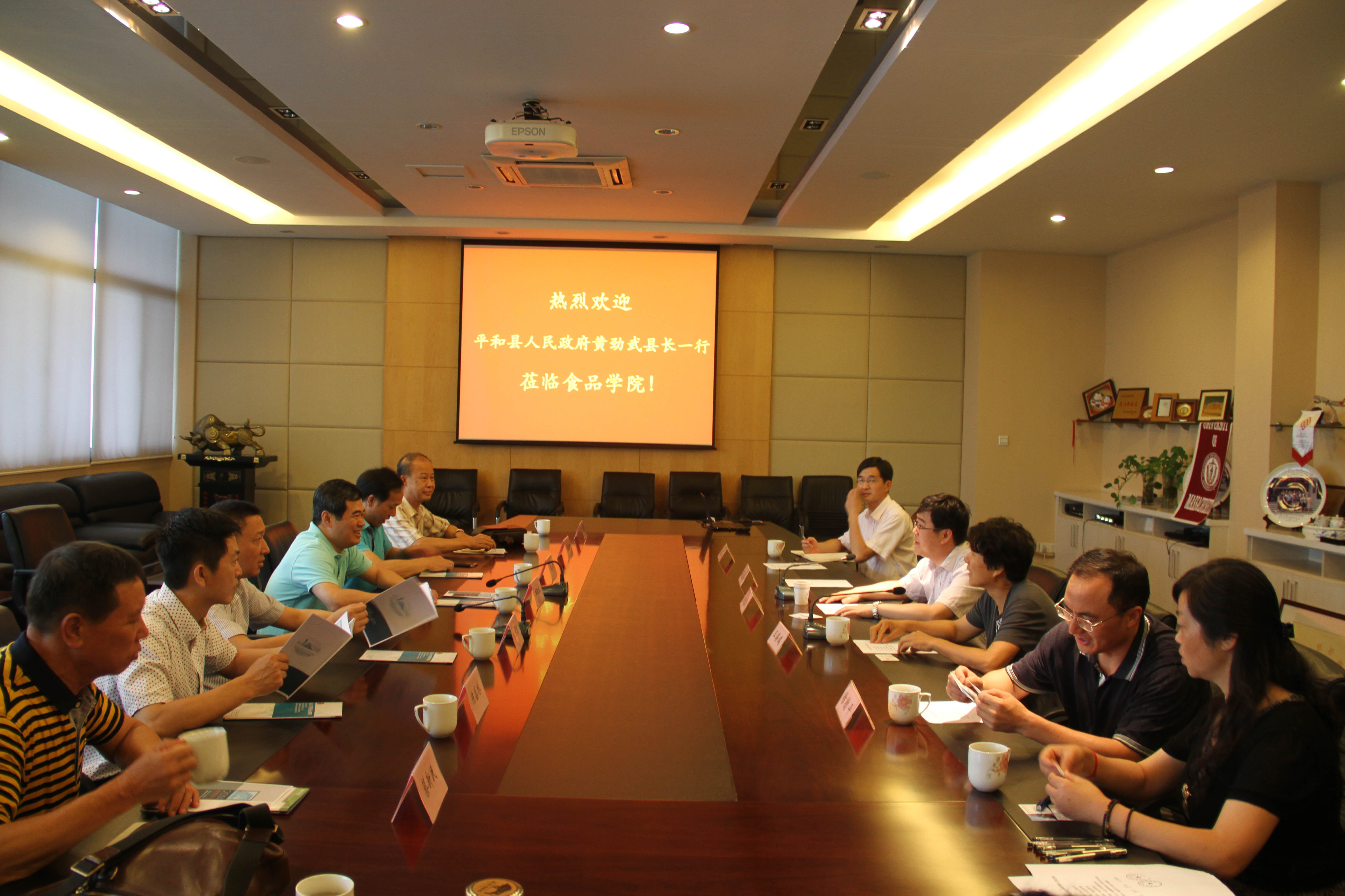 7月5日,福建省漳州市平和县县长黄劲武、县委党委黄添木、政协副主席林启明、科技局局长苏金树、招商局局长陈盛林及企业家一行来我院进行产学研交流。食品学院副院长刘元法、食品学院王海鸥等相关老师等参加交流会。...