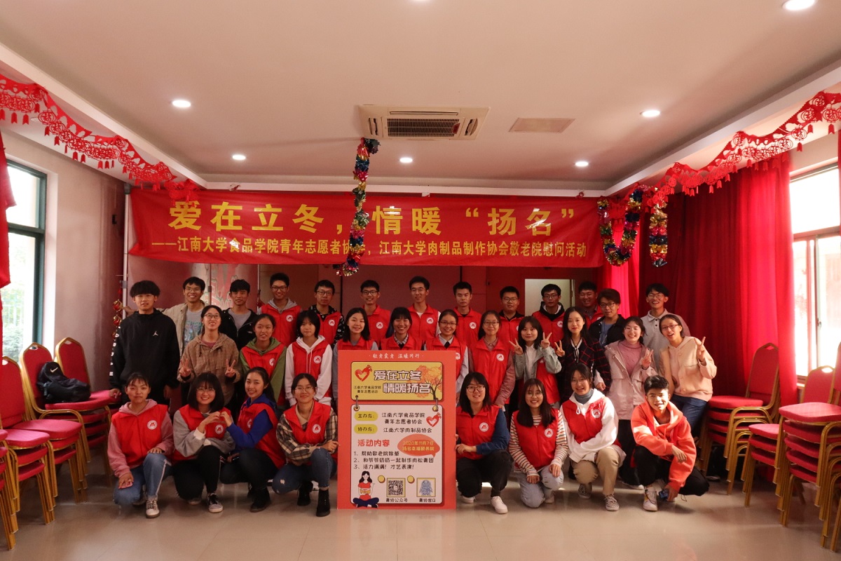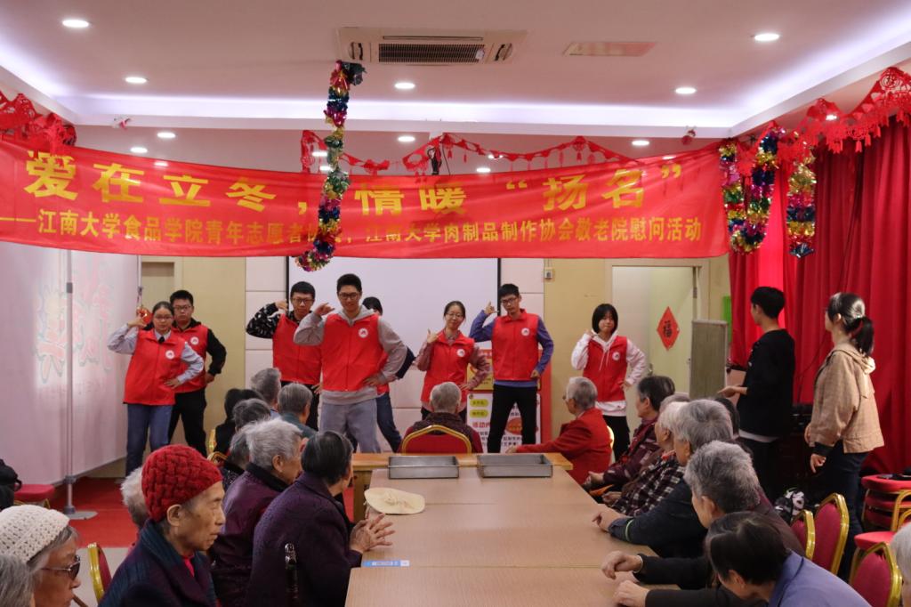 11月7日,食品学院青年志愿者协会全体成员联合肉制品俱乐部在无锡市扬名幸福颐养院举办了以“爱在立冬,情暖扬名”为主题的敬老院慰问活动。