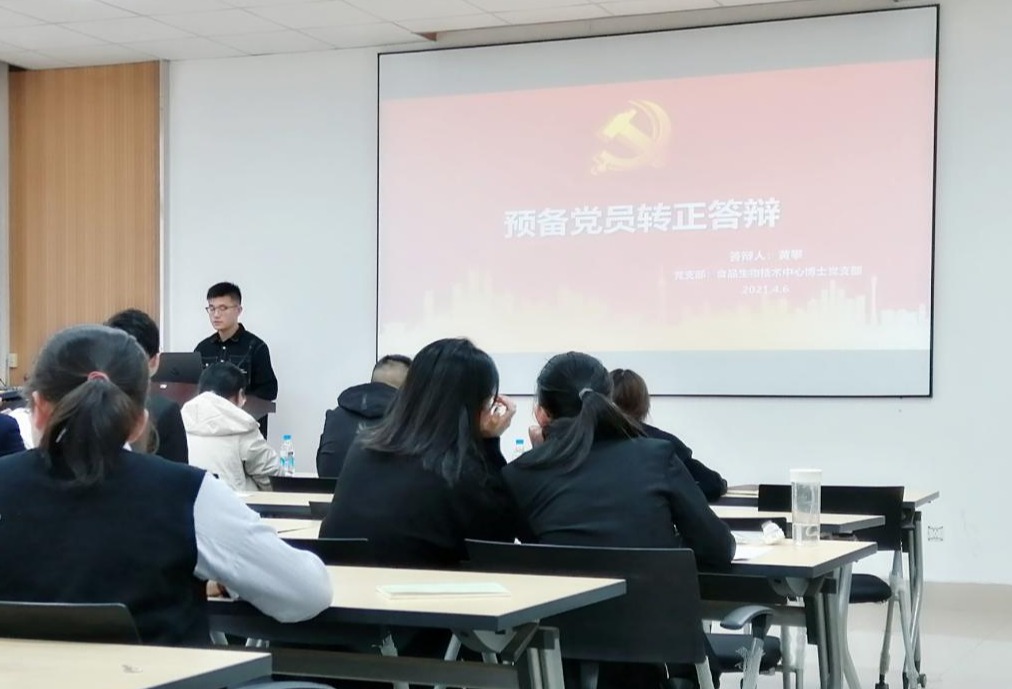 为进一步提高大学生发展党员工作质量,根据《江南大学大学生发展党员工作“三投票三公示一答辩”实施办法》有关精神的指示,结合食品学院实际情况,4月6日下午,食品学院在食品楼D916召开了食品学院预备党员转正答辩会。学院辅导员张瑶瑶、王文燕、陈婷以及食硕1903支部书记王良哲担任答辩评委,19名预备党员参加了本次答辩会。