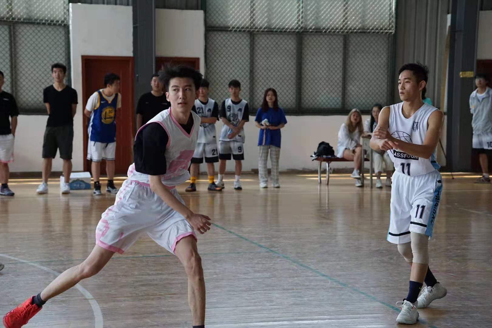 初夏灼灼烈日抵挡不了观众观赛的热情,比赛还未开始,篮球场地周围聚满了来为自己纵队加油的同学。一声哨响,篮球健儿们立即进入了状态,个个雄姿英发。看!他们自如地在赛场穿梭。瞧!他一下就抢过球,正准备投篮却被几个高个子对手挡住了去路,左躲右闪。比赛一开始科三就表现出强烈的求胜欲望,出色的配合以及迅速的回防,动作帅气利落。而科四的表现更是可圈可点,赛场上你争我夺、你攻我守、投球动作帅气利落。两队出色的表现赢得观众一波又一波的喝彩。最后科四获得了本次追梦赛季的冠军。
