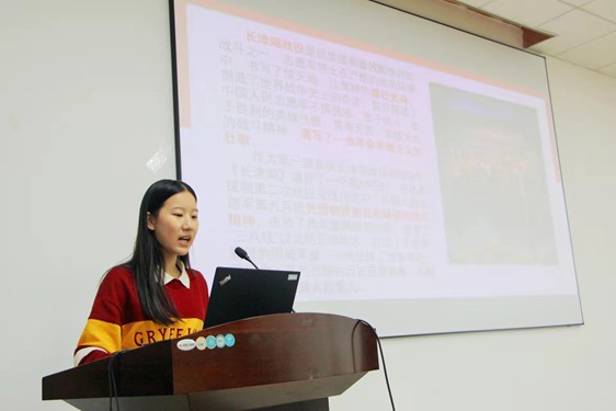 第五组庄耀同学谈到了《重庆谈判》并展示了小组成员参观王昆仑故居时的照片与组员们的心得体会,表达出了他们对伟人气魄的敬仰和传承红色血脉的决心。