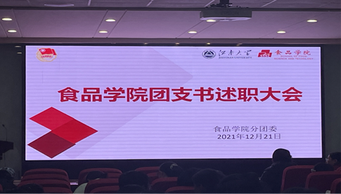 为总结工作、汲取经验,12月21日晚18:30,食品学院分团委于食品楼D912举行2021年度团支书述职大会暨“红旗团支部”评优大会。食品学院分团委书记朱伟、副书记李琳,本科生辅导员王文燕、张任、曹敏以及2019级、2020级、2021级本科生班级团支书、班长参加了会议。