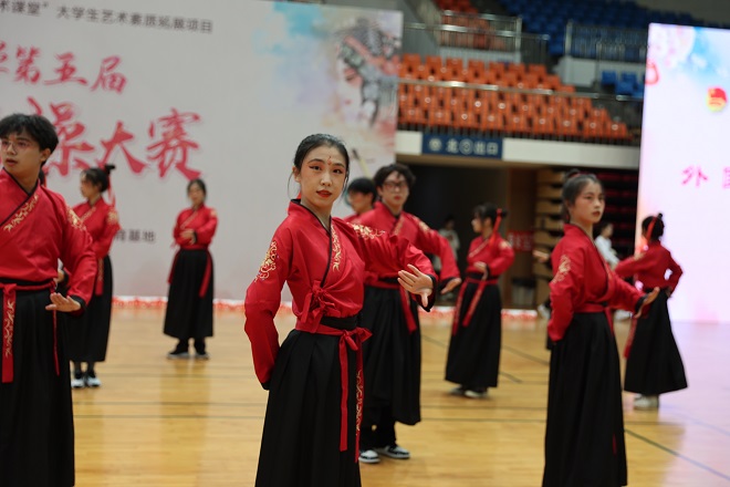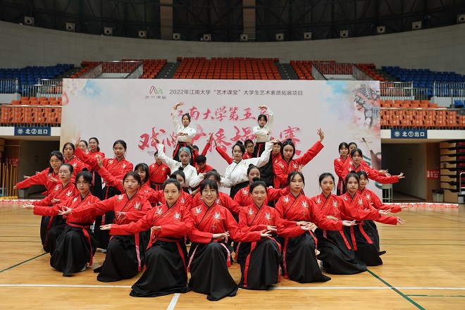 为弘扬中华传统戏曲文化,丰富大学生校园文化生活,11月5日,由国家大学生文化素质教育基地、校团委、校大学生艺术团、人文学院联合主办的江南大学第五届戏曲广播操大赛在学校体育馆顺利举行。我院共40名同学组队参赛,从全校16支参赛队伍中脱颖而出,以均分9.6分的好成绩荣获大赛二等奖,并获得优秀编排奖。