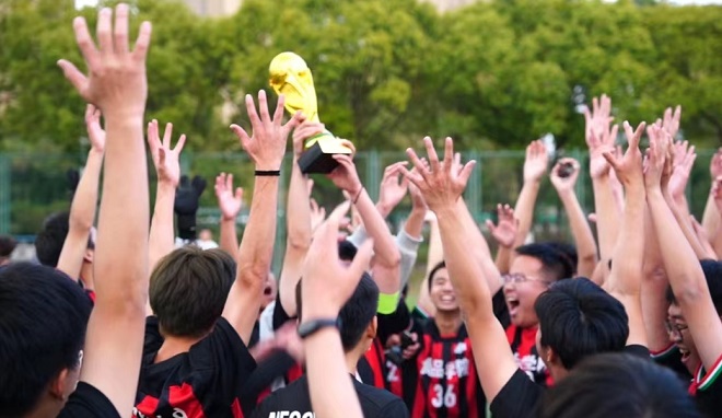 为增强各学院间的沟通交流,旨在以足球为介、赛场交友,江南大学足球协会精心筹办的2022年“足协冠军杯”秋季足球赛,经过一个月的前段赛后,于11月5日在体育中心西侧足球场迎来了最终决赛,食品外语联队和人机医学联队争夺冠军。