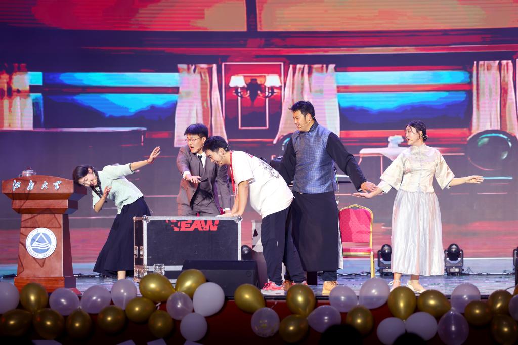 第二篇章名为“扬帆”。人文学院带来的舞蹈《开拓者》以我校食品学科跨越世纪的发展为蓝图,展现了智者先贤筚路蓝缕的创业历程,直击心灵。歌曲《任我行》充满自由与力量,传达食品学子不畏艰难、勇往直前的精神风貌。慷慨激昂的朗诵《食代新篇,照耀江南》刻画出大家对江南和食品的热爱。2024级本科生班主任张白曦、纪杭燕、吕小妹、郑玉娇和全体副班主任演唱的《明天会更好》送出对新同学的最美祝福。啦啦操表演《What is love》更是将现场气氛推向高潮。