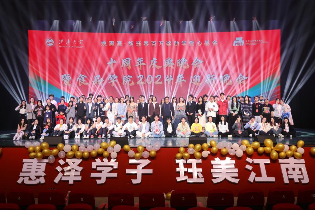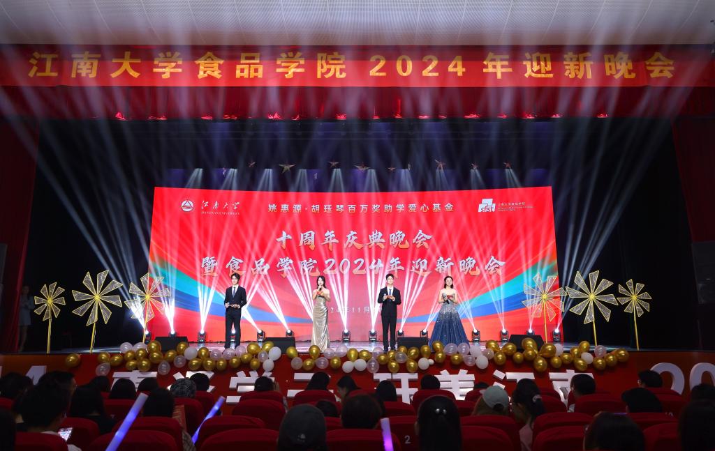 11月10日晚,江南大学“姚惠源·胡珏琴百万奖助学爱心基金”十周年庆典晚会暨食品学院2024年迎新晚会在文浩馆观众厅精彩上演。学院党委书记傅莉莉、院长范大明、副书记李雷、副院长(挂职)商飞飞,校团委副书记吴垚,全体辅导员、新生班主任及千余名学子参与活动,共享这场艺术盛宴。
