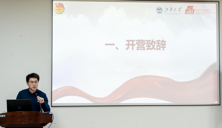 11月27日晚,食品学院第十六届“青马工程”学生骨干训练营正式开营。学院学工办主任兼分团委书记李金杰,2022级本科生辅导员张任,共青团江苏省委青年讲师团成员、我校马克思主义学院2024级博士研究生肖洋及第十六届青马训练营全体营员参加仪式及第一讲活动。