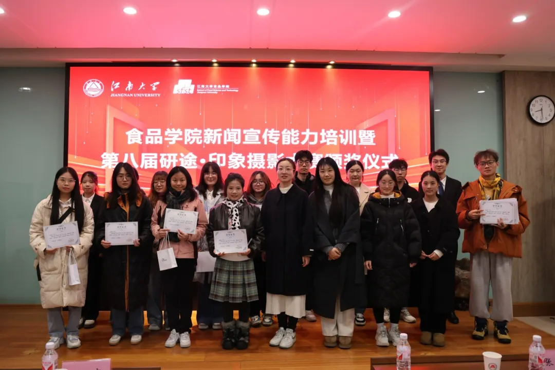 为进一步提升学生骨干新闻宣传综合能力,强化宣传阵地建设,近日,食品学院新闻宣传能力培训暨第八届“研途·印象”摄影大赛颁奖仪式在学院D912会议室顺利举行。江南大学党委宣传部摄影师胡奕,食品学院分团委书记李金杰,辅导员张任、刘璇,以及获奖学生、负责宣传工作学生干部参与本次活动。活动由学院研究生会梁朔主持。