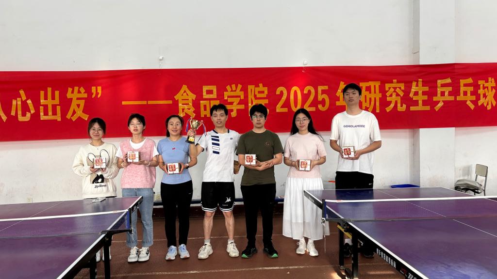 比赛进入白热化阶段,每位选手都拼尽全力,单打选手如猎鹰般精准把控落点,锐不可当;双打搭档似精密齿轮般无缝衔接,尽显风采。赛场上,叫好声、鼓励声此起彼伏,不绝于耳。那些拥有丰富赛场经验的教师与青春洋溢的学生搭档,早已将赛场上每一个人的热情点燃,共同书写着这场乒乓球赛的辉煌篇章。经过五轮鏖战,最终,由唐晓姝老师带领的食品3队夺得桂冠。