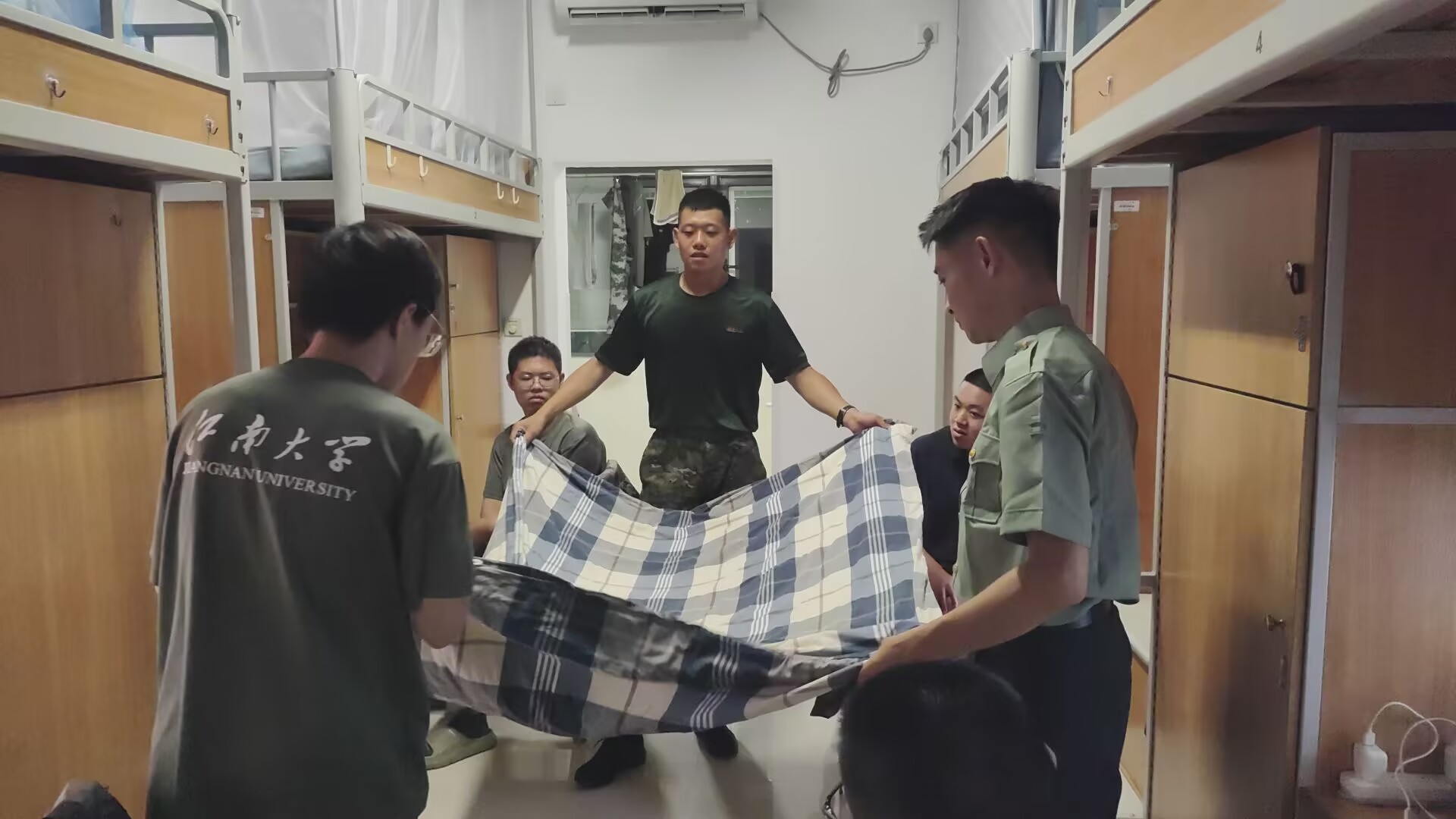 为帮助新生快速适应军训节奏,将自律意识融入日常,9月1日晚及9月2日上午,在训练间隙,一支由军训教官、食品学院辅导员穆元炜与2025级新生副班主任组成的军训内务检查小组深入食品学院溪苑、浩苑新生宿舍,开展集中内务检查与现场指导。