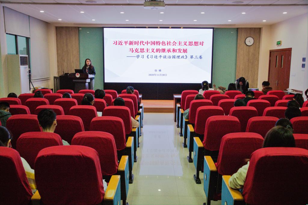 11月20日,食品学院第十二届“青马”训练营理论学习第二讲在食品楼D912举行,徐璐老师以“习近平新时代中国特色社会主义思想对马克思主义思想的继承和发展”为主题带领“青马”营员进一步了解习近平新时代中国特色社会主义思想及马克思思想理论。