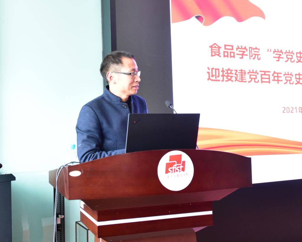 在启动仪式上,学院邀请到马克思主义学院教授刘大禹带来题为《以史为鉴,面向未来:学习习近平总书记关于“四史”的重要论述》的学习报告,拉开食品学院党史学习教育的序幕。刘教授从总结历史经验、吸收历史养分、肩负历史使命三个方面,从史学的角度,用大量丰富的史料讲述“为什么要学史,怎么学史,怎么用历史指导实践”,使现场师生受益匪浅。