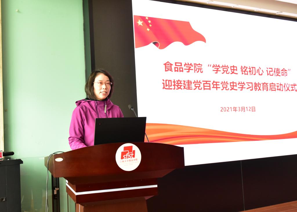 今年是实施“十四五”规划、开启全面建设社会主义现代化国家新征程的第一年,更是中国共产党成立100周年。为深入贯彻落实习近平总书记在党史学习教育动员大会上的重要讲话精神,3月12日下午,食品学院举行“学党史 铭初心 记使命”迎接建党100周年党史学习教育启动仪式,学院党委中心组成员、教师学生党支部书记和支委参加了活动。