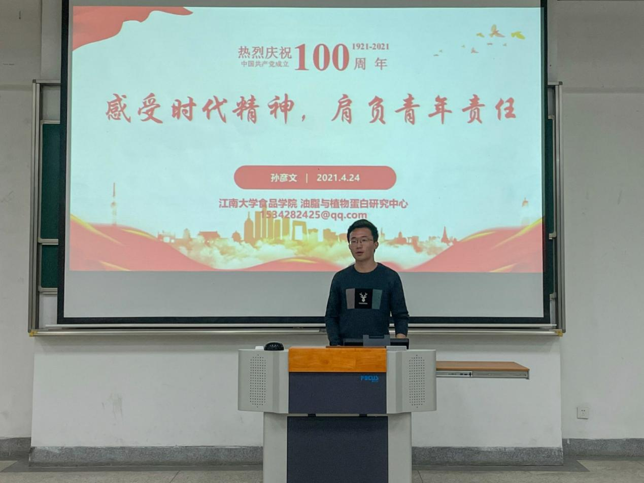 在中国共产党建党100周年之际,为进一步深化学生对党的性质宗旨的认识,提高学生的思想政治觉悟,4月24日晚,食品学院在教学楼2A127举办了“喜迎建党100周年,分享初心故事”主题活动。食品学院生物技术中心博士后田培郡、食硕2005党支部书记孙彦文受邀担任主讲,食品学院2020级全体本科生参加了本次活动。