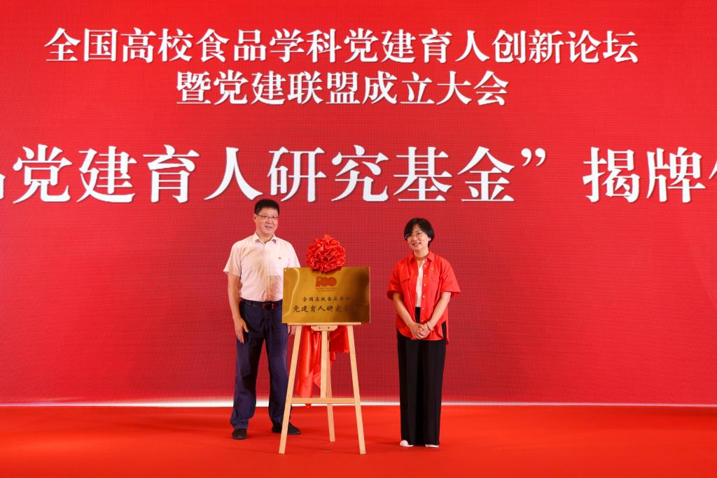 大会还举行了联盟成员单位授牌仪式和党建研究基金揭牌仪式。食品学院院长刘元法宣读了食品学科党建联盟成员名单,朱庆葆为食品学科党建联盟成员授牌。陈艳、周建军共同为“全国高校食品学科党建育人研究基金”揭牌。