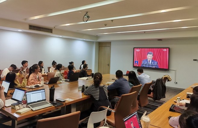党的二十大是在全党全国各族人民迈上全面建设社会主义现代化国家新征程、向第二个百年奋斗目标进军的关键时刻召开的一次十分重要的大会。在学院党政领导的带领下,各党团支部、青马训练营分门别类开展集体学习活动,认真聆听、热议习近平总书记的报告。