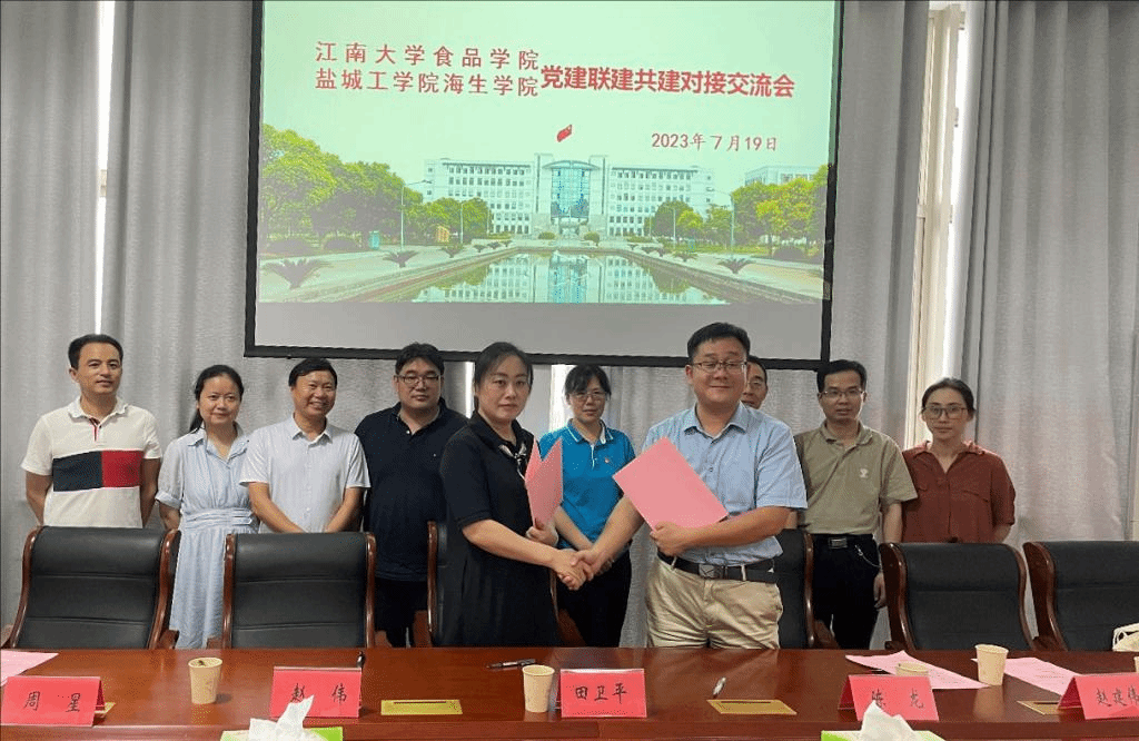 为深入贯彻落实党的“二十大”会议精神,进一步探索党建工作创新,以支部共建为平台,拓展校际合作新领域,Kaiyun官方网站登录入口与盐城工业学院海洋与生物工程学院举行了党建联建共建对接交流会。会上,高留才书记代表盐城工业学院对江南大学一行表示热烈欢迎,彭斌副院长致辞并介绍盐城工业学院的建校和学科发展历史,客观评价了学科目前存在的利弊。田卫平副部长就江南大学建校历史和学科发展历史、学生和各学院的总体情况,以及学校的下一步工作目标进行介绍。副院长赵伟聚焦于食品学院师资团队、科研经费、发展瓶颈和突破口等方面进行分享,并提出可以在海洋食品研究和承办国际会议等方面促进两校的进一步合作。最后,双方举行了支部共建仪式,Kaiyun官方网站登录入口食品组分与物性研究中心、食品资源与综合利用研究所联合教工党支部与盐城工学院海洋与生物工程学院党总支签订了《党建联建共建协议书》,就此开启了双方进一步深入合作的新起点、新征程。