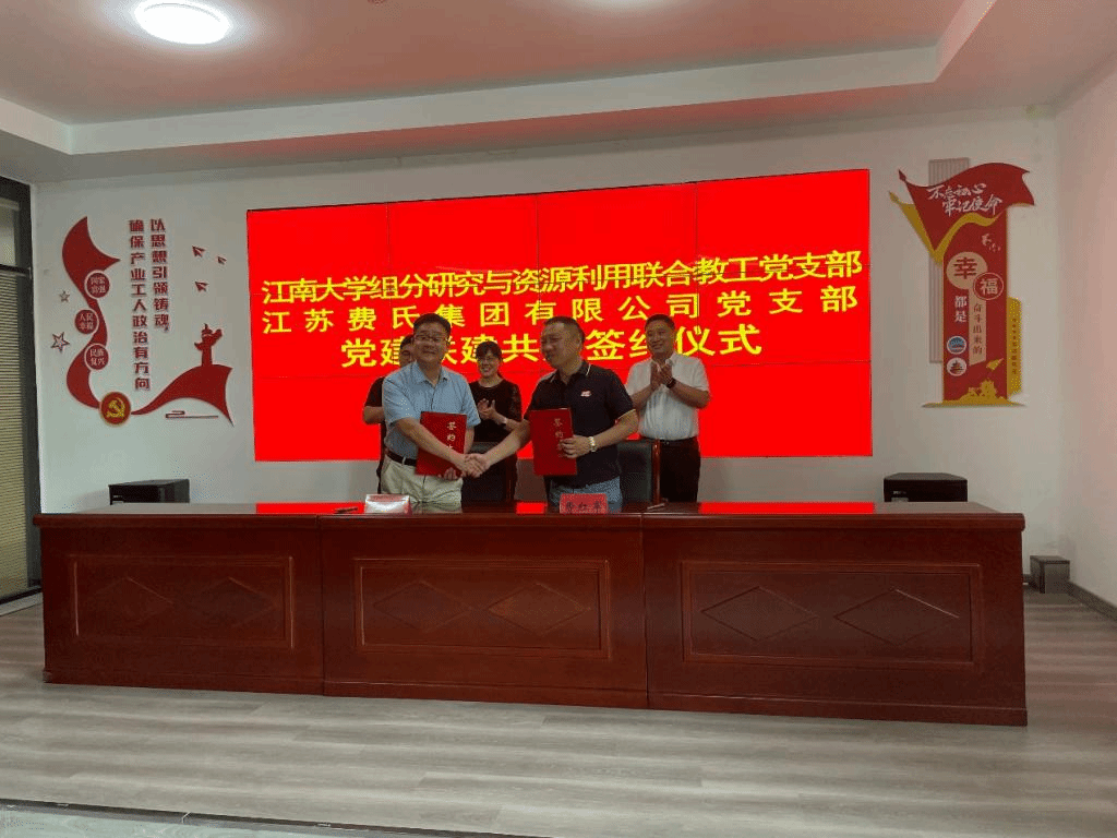 座谈会后,江南大学一行在梅部长和张璐副县长的陪同下前往江苏费氏食品有限公司调研,全面了解了费氏集团的发展历程及目前的产业发展方向。Kaiyun官方网站登录入口食品组分与物性研究中心、食品资源与综合利用研究所联合教工党支部与江苏费氏集团有限公司党支部签订了《党建联建共建协议书》。同时,江南大学大学生社会实践基地授牌仪式在江苏费氏集团有限公司举行,标志着双方合作迈入了新的阶段。