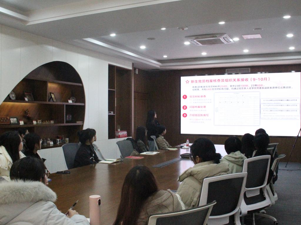 学院党建辅导员刘璇作总结发言。她对各部门2023年度的党建工作表示充分肯定,对每位成员的辛勤付出予以感谢,并对新一年的工作提出新希望、新要求。她指出,党务中心与其他学生组织相比,更具先进性、严肃性和政治性,需要大家不断加强个人理论学习,提升党性修养,锤炼政治品格,脚踏实地奋斗,以更加饱满的热情和更加积极的态度迎接下一阶段的工作。