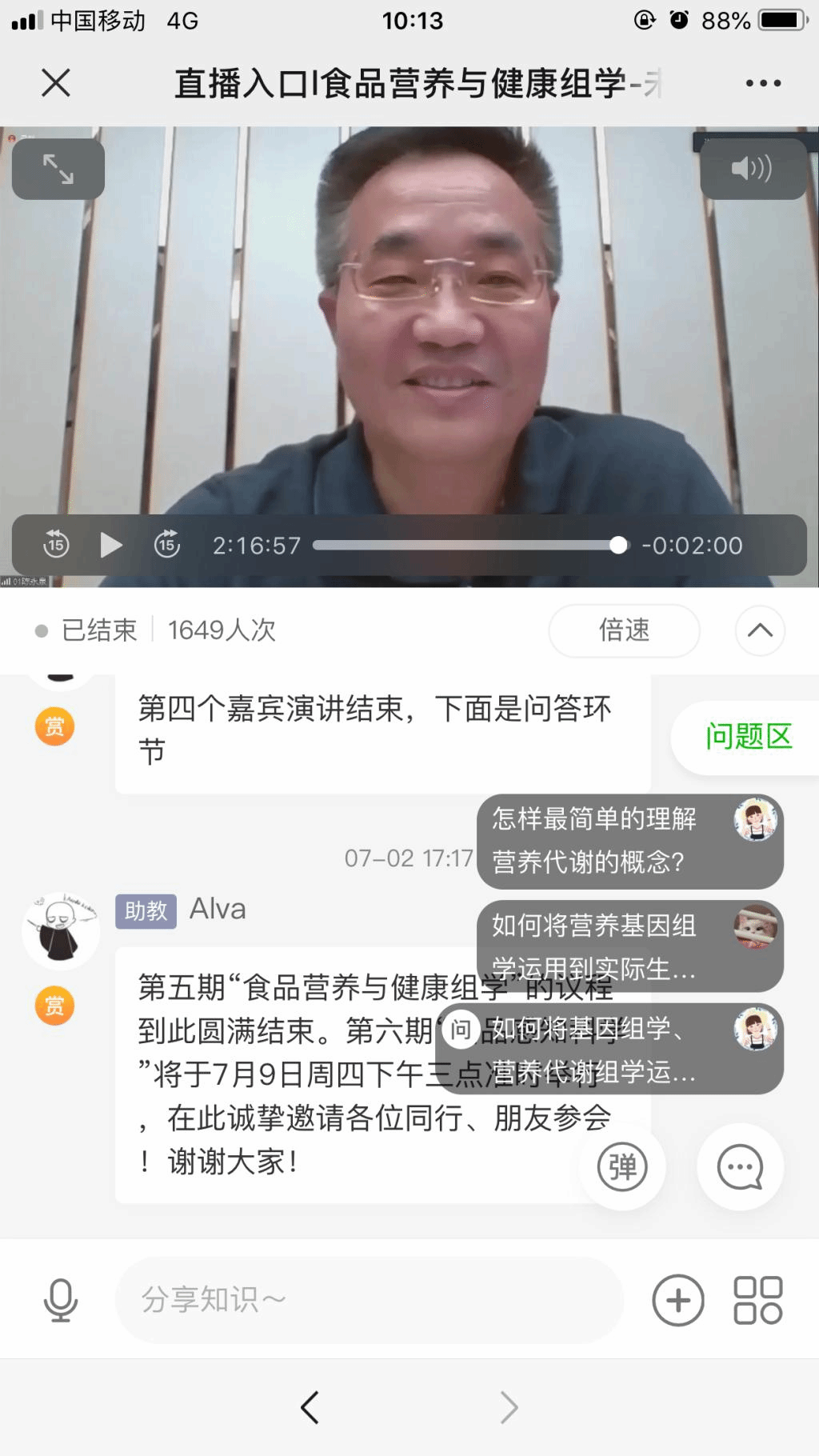 随着我国经济实力和人们生活水平的日益提升,“营养”与“健康”逐渐发展成为食品行业的主旋律。当前以宏基因组、营养代谢组学、蛋白质组学及转录组学为代表的健康组学分析技术快速崛起,为未来食品精准营养定制开启了新的导航,成为国际食品营养学领域的研究热点。在会议进行过程中,会场反响热烈,大家热情高涨,展现出大众对食品营养与健康问题极高的关注度。通过与几位专家的讨论,大家不仅了解了食品营养与健康领域的国内外最新研究进展,还探讨了未来研究的新方向、新技术及面临的新挑战。希望通过本期论坛的讨论,能够使大家对食品营养与健康问题有一些新的认识,同时也期望通过我们的共同努力,最终实现该领域的更好、更快、更持续的发展。