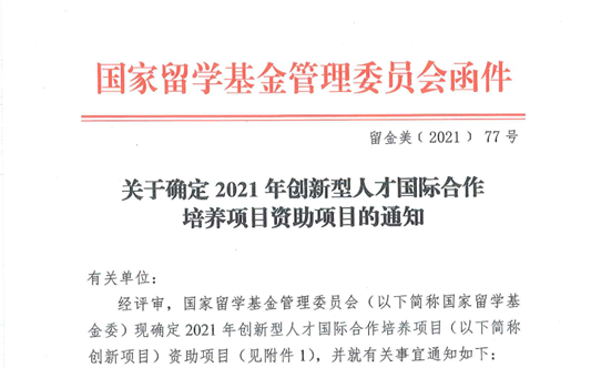国家留学基金委自2014年起设立并实施“创新型人才国际合作培养项目”,旨在更好地服务国家战略、教育领域综合改革以及一流大学和一流学科建设,培养创新型、紧缺型、复合型国际化人才,聚焦国家战略急需专业领域,定位“高精尖缺”人才培养,填补特定专业领域国际化人才培养空白。创新型人才国际合作培养项目的获批,将进一步加快学院专业教育的国际化,助力学院“双一流”建设。