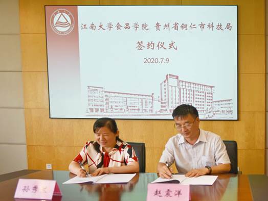会上,刘元法院长代表学院向赵震洋局长一行的到来表示热烈欢迎,学院与铜仁市的合作交流有多年的历史,合作成果丰富;学院一直鼓励和支持科研人员与铜仁企业技术合作、科研攻关,为铜仁市食品产业发展提供智力支持。随后,赵震洋局长讲话,介绍了铜仁市产业发展现状和配套政策情况,提出天麻、油茶等当地丰富特色农产品加工的迫切需求,希望双方建立长期合作机制,促进铜仁食品产业更高质量发展,为铜仁市打赢脱贫攻坚战贡献力量。院长助理程力介绍了学院情况和企业合作情况。最后,双方共同签署了铜仁市科技局-Kaiyun官方网站登录入口合作框架协议书。