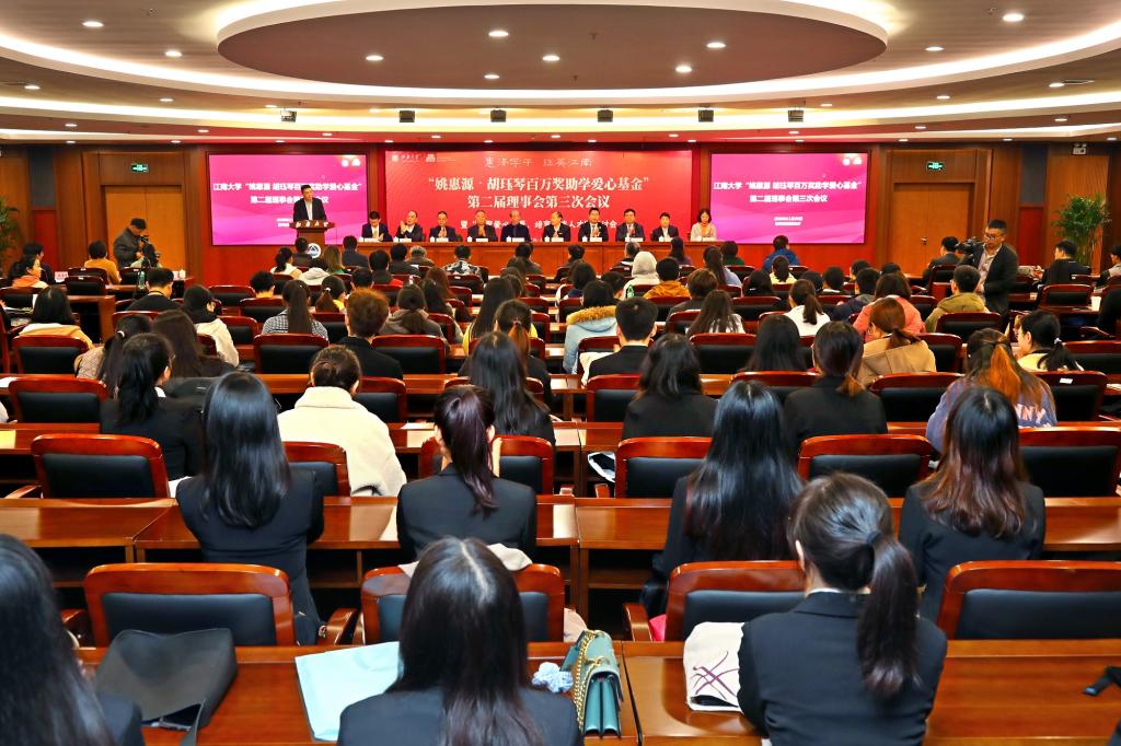 11月26日下午,由我校食品学院首任院长姚惠源、胡珏琴伉俪发起成立的“姚惠源胡珏琴百万奖助学爱心基金”第二届理事会第三次会议暨“汇聚爱心力量,培育一流人才”研讨会在图书馆五楼报告厅隆重举行。江南大学副校长顾正彪教授,食品学院首任院长、爱心基金发起人姚惠源教授,基金会理事,江南大学社会资源处处长黄敏以及食品学院师生代表出席大会。会议由食品学院党委副书记魏珍吉主持。