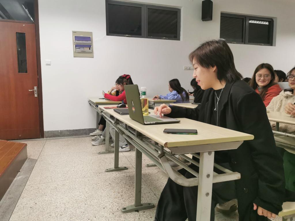 食科1805团支部团支书刁舒漫为芒宽中学的同学们介绍江南大学