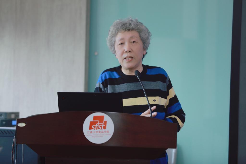 王武教授为食品学子作题为《中国传统食品“型、名、意”之谐》的专题报告。她紧紧围绕“型”融于“名”且隐于“意”的核心理念,以中国经世千载的传统民间食物的外部特征“型”为切入点,由浅入深地讲述了中华传统食品的“型”“名”“意”的历史背景和文化轶趣。她认为,中国传统食品的命名大都来源于食品的形状和材料,从“天圆之圆”“地方之正”“角之妙用”“条束秩趣”“非遗之食”五个方面来向大家阐述中国传统食品的命名中蕴含的哲学智慧。王教授积极引导食品学子深挖食品所承载的人文属性,推进传统食品内涵特色的可持续发展,让“文化自信”入脑入心。她强调,食品科学需要交叉,食品人需要始终保持对食品文化的敬畏之心,不断思考食品延伸出去的道义和文化。