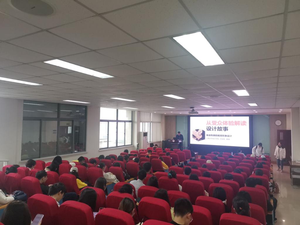 王安霞教授以《食品包装的视觉形象设计》为题,紧紧围绕“从受众体验解读设计故事”的主线,通过列举世界各地极具代表性和创新性的食品包装案例,如德国红点奖(Red Dot Award)、iF设计奖,从不同的角度为同学们阐释了食品包装的艺术同样需要与时俱进和不断创新。她认为,当今社会“设计无处不在”,包装不仅能直接反映出社会经济、科技发展水平,也能反映出人们的价值取向、消费观念、消费水平以及时代精神风貌和文化内涵。她强调,包装是一项系统的工程,逐步呈现出跨学科、跨专业、跨文化的特征。最后,王教授提出殷切的期望,她希望大家无论从事什么专业,都要用设计思维来思考,不断提升审美能力;要做“有根”的设计,在传承的基础上进行创新,做会讲中国故事的特色包装,让文化自信的种子植根于中国的食品包装上,让中国元素走上国际大舞台。