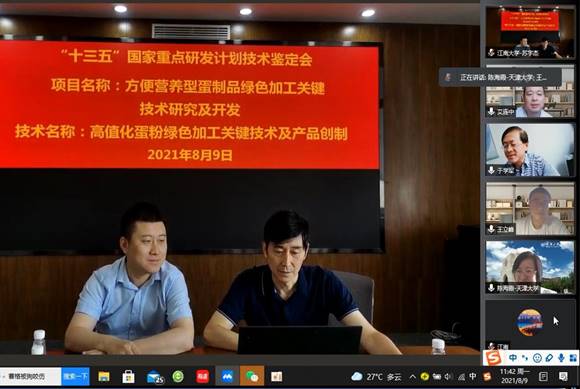 8月9日,中国轻工业联合会以视频会议的方式主持召开了“高值化蛋粉绿色加工关键技术及产品创制”项目技术鉴定会。该项目由Kaiyun官方网站登录入口杨严俊教授主持,江南大学、江苏大学、荣达禽业股份有限公司、江西农业大学、西北农林科技大学五家单位共同完成。江南大学科研院副院长范大明、项目负责人杨严俊教授及项目主要成员参加了鉴定会。