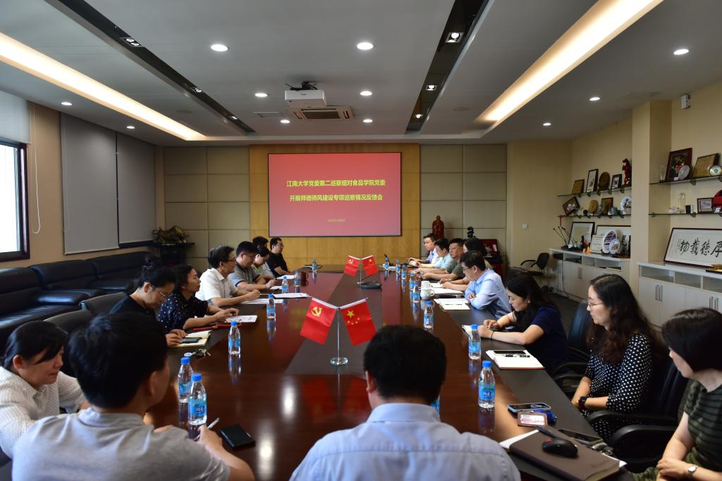 10月8日下午,学校党委第二巡察组向食品学院党委反馈了师德师风建设专项巡察情况。巡察组副组长、校工会主席黄壮霞分别向学院主要负责人、党政领导班子和教职工代表进行了巡察情况反馈,校纪委副书记、党委巡察工作领导小组办公室主任丁文勤传达了学校党委关于巡察整改工作的指示精神,并对学院党委落实巡察整改任务提出要求,院党委书记傅莉莉在反馈大会上作表态发言,第二巡察组成员、学院领导班子成员及教职工代表参加了反馈会,院长刘元法主持会议。