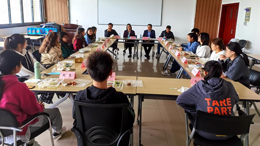 10月21日中午,食品学院在食品楼D916会议室召开2021年国内交换生迎新午餐会。学院党委书记傅莉莉,党委副书记、副院长魏珍吉,分团委书记朱伟以及来自新疆石河子大学、山西师范大学大学的15名交换生参加了座谈,座谈会由辅导员刘鑫主持。