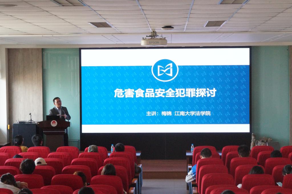 为进一步启迪和鼓励食品学子突破单一学科研究瓶颈、拓展学科交叉的视野和思维,11月3日下午,“食品X”交叉学科系列讲座时隔四个月再次与食品学子相聚在食品楼D912。本次主讲嘉宾江南大学法学院副教授梅锦,任江苏省刑法学会理事、江苏省检察学会常务理事,主持司法部、教育部等多项课题,2014年被评为江南大学第十届“我最喜爱的老师”。食品学院分团委书记兼学工办主任朱伟出席活动,170余名师生到场聆听。