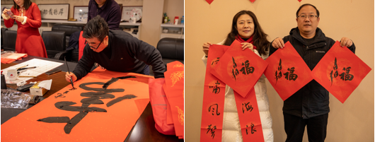 笔墨凝书香,新年送万福。“写春联”是象征的吉祥,表达人们向往美好生活的传统民俗文化。为弘扬中华优秀传统文化,喜迎虎年新春,食品学院分工会特邀请横云书画院的书法家们为老师们撰春联,送祝福。SFST新食代媒体工作室在D916为老师们拍贺岁写真,照片类型丰富,有集体贺岁照、集体职业照、个人职业照等,活动广受老师们的喜爱。