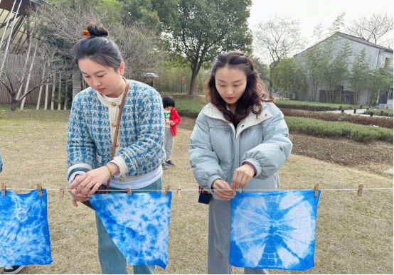活动有非遗古法扎染、制作竹筒饭、播种向日葵及互动游戏等环节。首先,在扎染工艺师的指导下,大家发挥想象与智慧,将预先准备好的丝巾通过折叠、捆扎、扭曲等手法进行造型,然后用细绳、夹子等工具进行绑扎固定,再浸泡染料片刻,即可染制出“独一无二”的图案纹理。随后,大家一起动手制作清香诱人的竹筒饭,将大米混合玉米、虾仁、火腿等食材,放进新鲜的竹筒里,蒸制一个小时,飘香四溢的竹筒饭便热腾腾地出炉了。最后,来到向日葵播种区域,一起松土、播种、浇水,在亲身实践中体验劳动与种植的乐趣。洒下一粒粒种子,也栽下一株株“希望”。