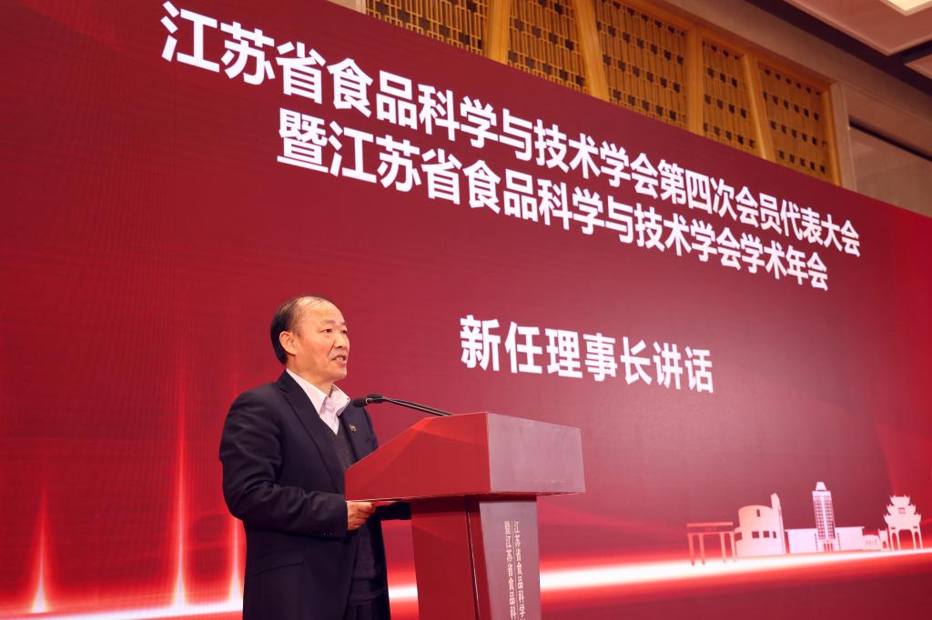 闭幕式上,新任理事长顾正彪教授讲话。他说到,江苏省食品科学与技术学会在以金征宇教授为理事长的第三届理事会和全体会员的努力下,在开展学术交流、服务科技创新发展,发挥人才优势、提升科技服务能力,加强科普工作、提升公众科学素养等方面做了大量卓有成效的工作,为新一届理事会的工作奠定了坚实的基础。他指出,良好的产业基础、顶尖的平台和人才支撑,为学会开展工作,服务江苏省食品产业科技创新和高质量发展提供了必要的条件。顾正彪进一步介绍了学会未来开展的重点工作和设想,他坚信,在省科协的坚强领导下,在中国食品科学与技术学会的指导和支持下,在兄弟协会的紧密合作下,在各位副理事长、常务理事和理事的共同努力下,江苏省食品科学与技术学会的前景将是一片光明,也一定在江省食品产业全面融入和服务国家战略中作出“江苏贡献”。