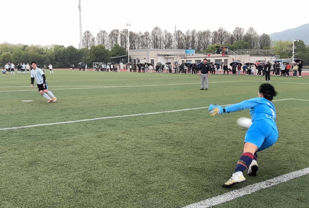 被罚下一名后卫中坚,10人应战的食品学院教练组立即进行战术调整换人,针对性布置落位和防守,加强跑动和补位。替补队员和现场百余名观众和为场上队员加油呐喊,队员们拼劲十足,展开了更加顽强的拼抢,多次切断机械学子传接球。最终食品学子凭借团结的防守,将比分定格为0:0,比赛进入紧张刺激的点球大战。
