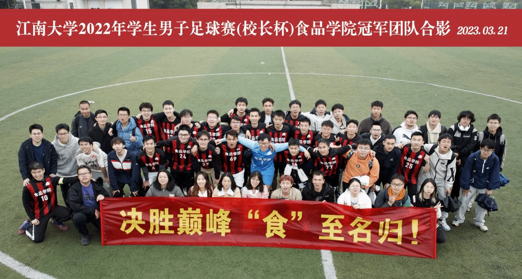决胜巅峰,“食”至名归!自上学期食品学子夺得“足协杯”冠军后,再次捧得含金量更高的“校长杯”桂冠,成为江南大学历史上第一支“双冠王”球队!食品学子将始终铭刻“江南食品人,敢为天下先”的信念气质,持续培育和发扬顽强拼搏、勇往直前的体育精神,团结奋进争取再创辉煌!