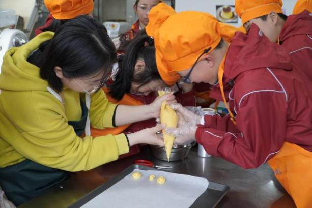 小朋友们对五种不同气味的嗅闻瓶进行辨别。通俗的现象中包含了专业的知识,亲手完成的科学小实验激发了在场师生对食品科学的强烈兴趣。来自基地的张希娟、吴臻艺则在食品工坊为同学们准备了泡芙制作与品评环节。助教老师引导小朋友们运用刚刚学习的食品感官知识对泡芙的成品进行多维度测评。经过小朋友们的品尝鉴定和热烈讨论,最终以较高质量完成了对泡芙的品鉴,大家也对日常食品的品鉴方法有了更多的了解。