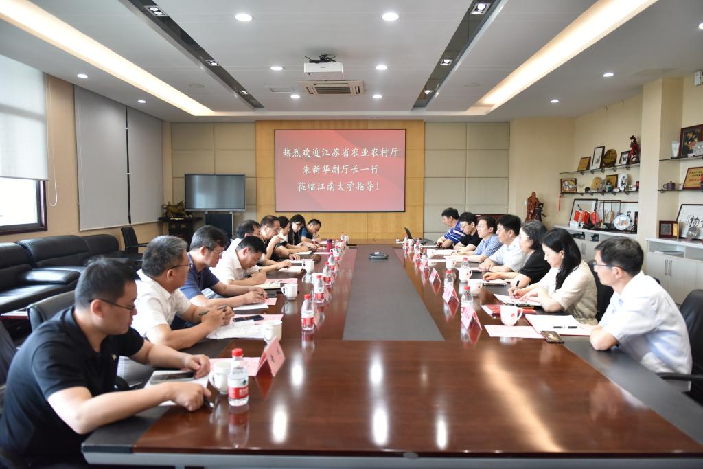 6月15日,江苏省农业农村厅副厅长朱新华一行9人来院做农产品加工专题调研。江南大学党委常委、副校长倪松涛、产业技术研究院院长王立、食品学院党委书记傅莉莉、副院长翟齐啸、粮食发酵与食品生物制造国家工程研究中心副主任王莉、食品学院教授常明、副教授姜启兴等参加交流座谈。座谈会由傅莉莉书记主持。