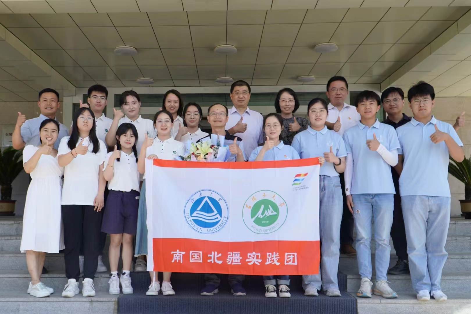 今年暑期,“南国北疆”大学生联合实践团再次出征。7月7日,在无锡江南大学,食品学院党委副书记、副院长李雷为联合实践团授旗,开启华东之旅;7月15日,在新疆石河子大学,我院党委书记傅莉莉、石河子大学食品学院党委书记程卫东共同为联合实践团授旗,启动新疆之行。