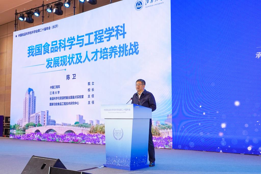 中国工程院院士、江南大学校长、食品科学与资源挖掘全国重点实验室主任陈卫作《我国食品学科发展现状及人才培养挑战》专题报告。他指出,历经百余年发展,我国现已形成世界最大、影响力十足的食品学科群。面向未来,一要服务国家战略,构建政产学研整合的教育生态圈;二要将人才培养从学科导向转为“产业布局+未来需求导向”;三要坚持立德树人根本任务,优化师资队伍评价机制,激发青年科技人才创新活力。