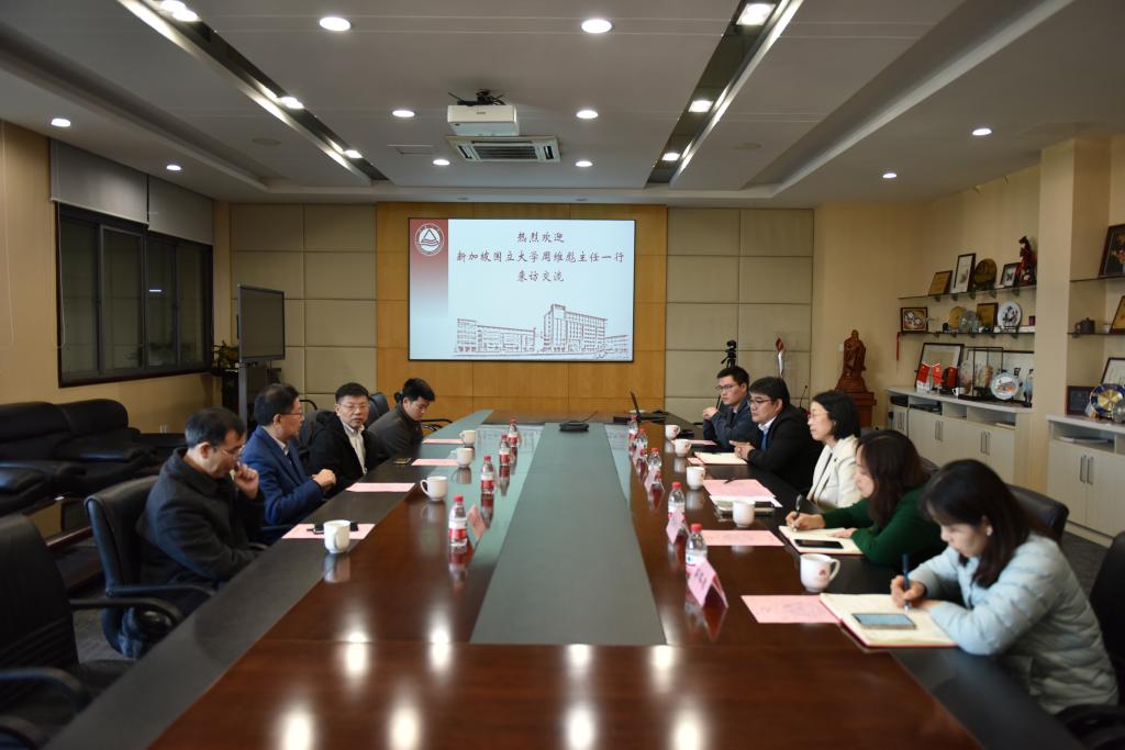 12月21日,新加坡国立大学食品系主任周维彪等一行4人来访我校食品学院,并开展一系列学术交流与合作活动。食品学院党委书记傅莉莉,副院长谢云飞、赵伟,副教授于航等参加座谈会。