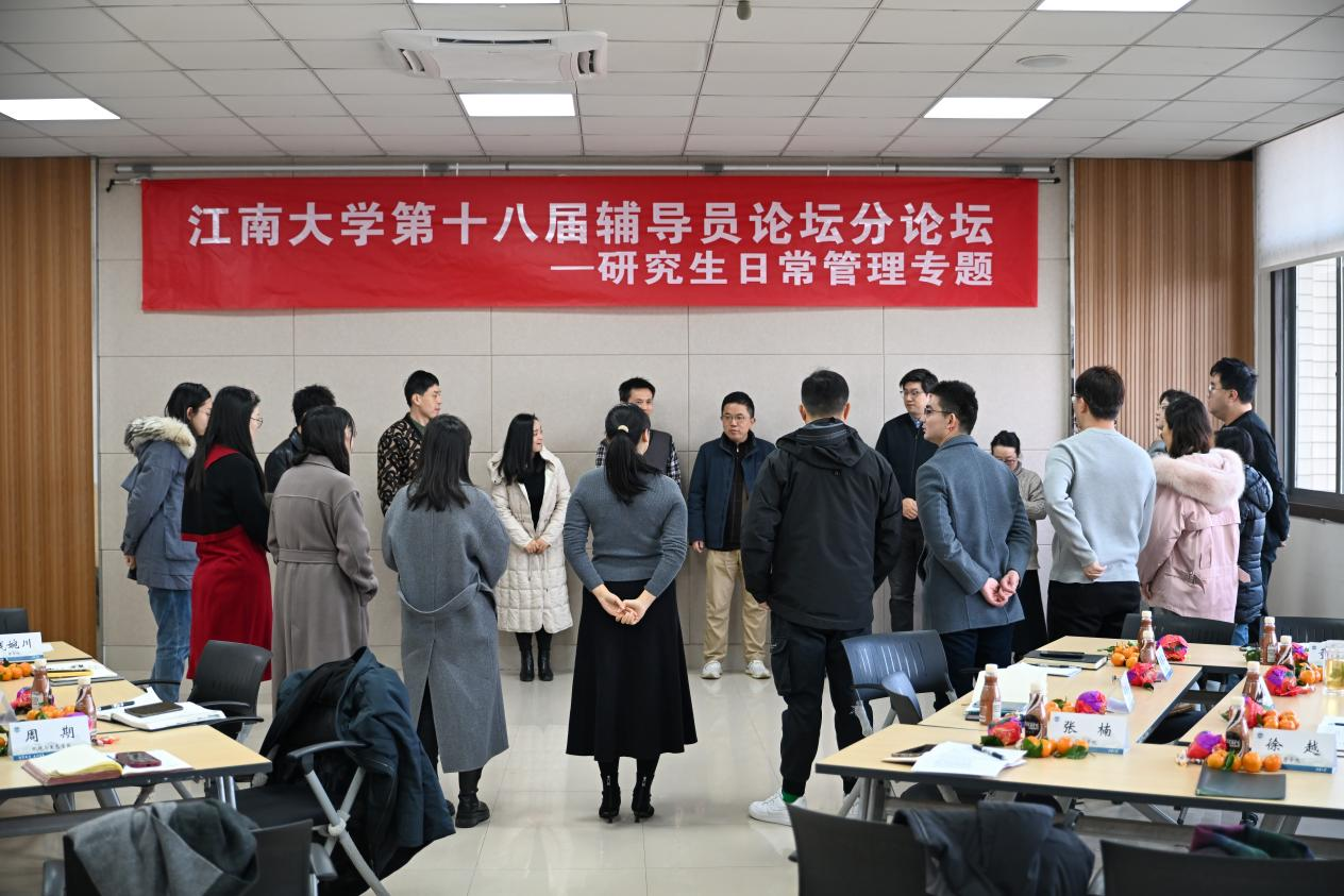2023年12月27日上午,分论坛顺利举办第一场活动。党委研究生工作部副部长、研究生院副院长陈周,食品学院党委副书记、副院长李雷,商学院党委副书记、副院长徐静及来自各学院20余名专兼职辅导员参与活动。
