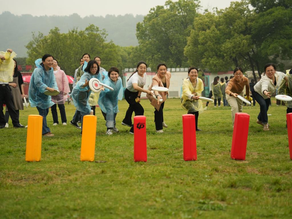 接下来的活动是极限飞盘。在宽阔的场地上,大家尽情挥洒汗水,展示着飞盘的技巧与魅力。通过这一活动,教职工们释放了工作压力,感受到了集体运动的无限快乐。