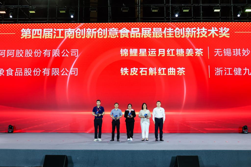 5月27日下午,第四届江南创新创意食品展颁奖仪式在校体育馆举行。经现场品鉴、大众投票等环节,最终诞生获奖产品。团委书记魏珍吉、食品学院副院长程力为东阿阿胶股份有限公司等18家荣获“最佳创意产品奖”的单位颁奖;食品学院党委书记傅莉莉、产业技术研究院副院长李博为白象食品股份有限公司等18家荣获“最受欢迎产品奖”的单位颁奖;食品学院院长范大明为东阿阿胶股份有限公司等4家荣获“最佳创新技术奖”的单位颁奖。获奖产品同时在体育馆内展出。