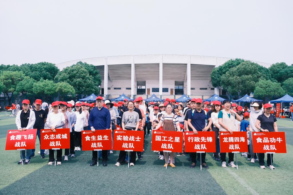2024年6月1日上午,江南大学东迷你足球场上欢声笑语此起彼伏、热闹非凡。食品学院分工会精心筹办的“快乐运动,乐享食光”趣味运动会在此隆重举行。在学院党委书记傅莉莉、院长范大明、党委副书记李雷、副院长谢云飞等党政领导和分工会主席洪雁的带领下,由百余名教师组成的八支战队齐聚一堂,共同上演了一场别开生面、精彩纷呈的运动大比拼。