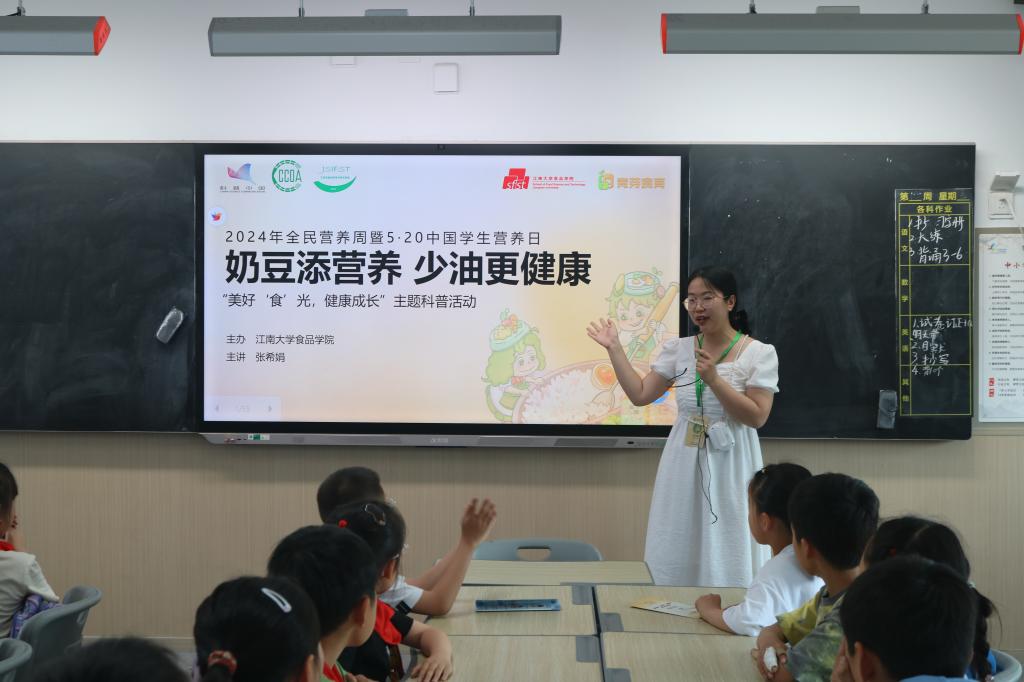 支教地区科普。5·20全国学生营养日之际,食品学院副教授唐雪、副研究员孙嘉笛、助理研究员樊铭聪携手江南大学研究生支教团与食品学院青芽食育团队,在线为龙陵县龙山镇城区小学教育集团龙山校区三年级全体师生带来三场营养健康科普讲座,助力学校地区儿童健康成长。