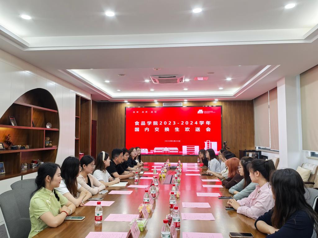 6月24日下午,食品学院2023-2024学年国内交换生欢送会在学院D925会议室顺利举办。党委副书记兼副院长李雷、学工办主任兼分团委书记李金杰、2021级本科生辅导员曹敏及来自台湾实践大学、石河子大学、山西师范大学的22名交换生参加活动,欢送会由2022级本科生辅导员张任主持。